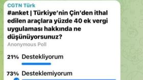 टर्कीका ७०% भन्दा बढी नेटिजनहरूद्वारा चिनियाँ गाडीहरूमा अतिरिक्त शुल्क लगाउनु निर्णयको विरोध
